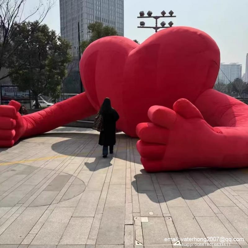 red heart inflatable cartoon hands hug